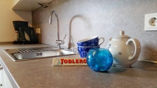 De keuken beschikt over een vaatwasser, grote koelkast en vriezer, inductiekookplaat en heteluchtoven. Verder zijn er voldoende potten/pannen, bestek en servies voor (meer dan) dertien personen.